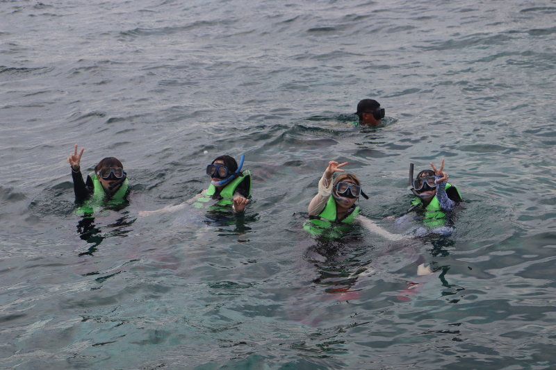 シュノーケリングは初めての生徒も多く、海水を飲んでしまうこともありましたが